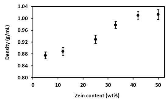 Effect of zein content on solution density.