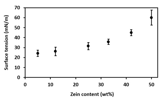 Effect of zein content on solution surface tension.
