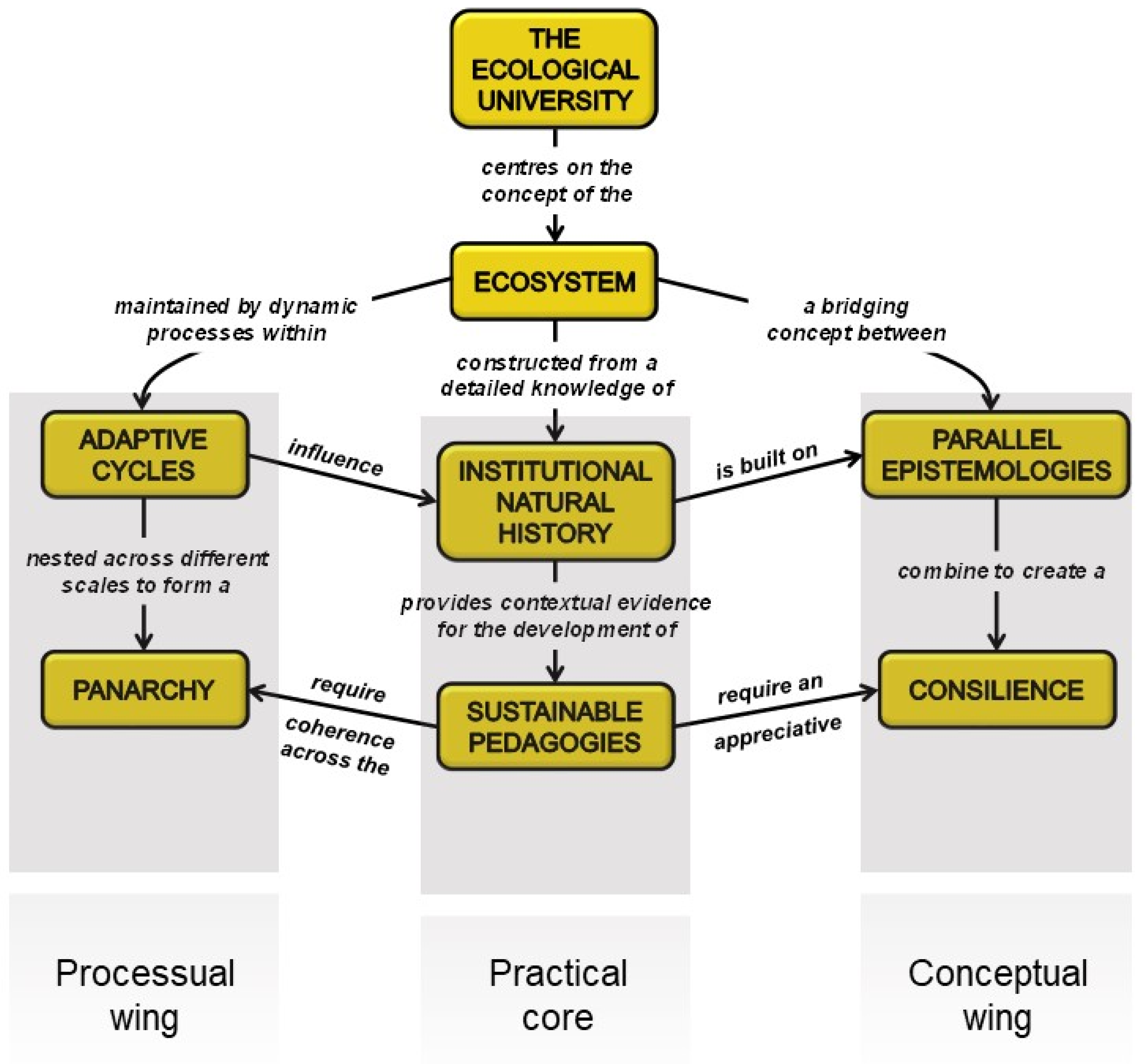 - Stratford, R. What Is the Ecological University and Why Is It a Significant Challenge for Higher Education Policy and Practice? PESA-Philosophy of Education Society of Australasia, ANCU: Melbourne, Australia, 2015; Available online: https://www.academia.edu/19661131 (accessed on 31 July 2022).