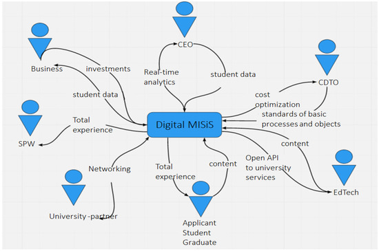 NUST MISiS performs the digital transformation of processes to ensure the maximum coverage of the needs of applicants, students and academic staff through identification of the most essential issues thus contributing to the generation of the university interaction experience as well as by selecting relevant and efficient solutions for each of them. The basic elements of the formed ecosystem are consistent with the ideas mentioned in scientific studies on the ecosystem approach, indicative coordination and values control, as well as the requirements of the present-day employers and standards of education under the conditions of the dynamic transformation of the environment [6,7,10,13,14].