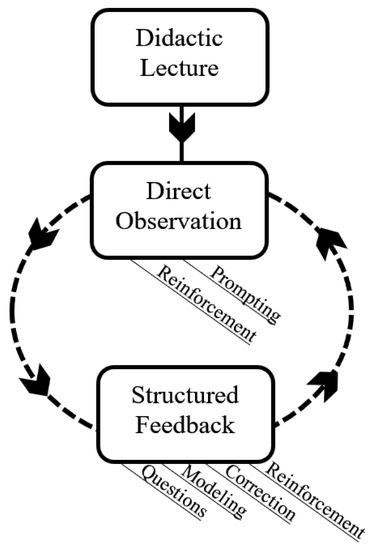Following the provision of feedback, the parent conducted another 4 min session with the child. Sessions followed by feedback continued until the end of a home visit or when an instructional strategy was mastered. See Figure 1 for a depiction of the sequence of training components used to target each instructional strategy.