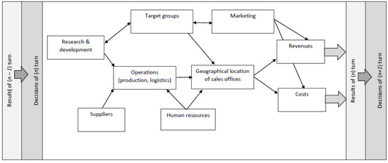 Figure 1. The logic of the business-oriented version of the BizArena business simulator.