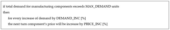 The prices of the components and materials needed to manufacture the final product are variable and depend on the current demand generated by players in a given turn. The component pricing mechanism in the game based on the scenario of manufacturing electric scooters is presented in Figure 4.