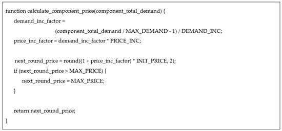 Figure 7. The pseudocode of the algorithm implementing the component pricing protocol in the BizArena business simulator.