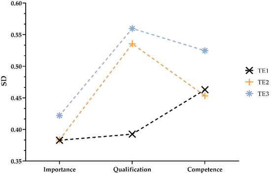 Average standard deviation (SD) for the importance of classroom subjects, the level of qualifications obtained during the study, and ‘teacher’s competence.