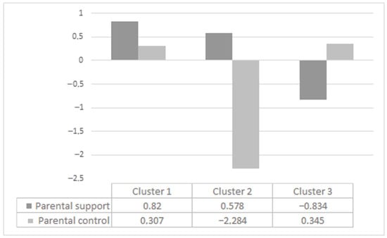 Results of the cluster analysis on parental support and parental control.