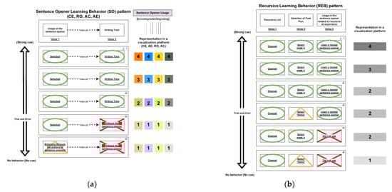 Moreover, thinking support functions offer support for writing in three main ways, as was previously discussed: a verbalization support function with sentence openers, a visualization function of learners’ thinking behaviors, and a recursive-thinking reminder function. The next subsections provide the design details of each support function.