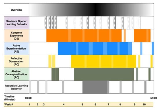 Subsequently, the mentor observed that the learner may have begun to realize the concept of recursive thinking. The learner started to develop recursive learning behavior by selecting the previous experience as “None” from weeks two to four. The mentor used this information to encourage connecting to past learning and extending it into the future.