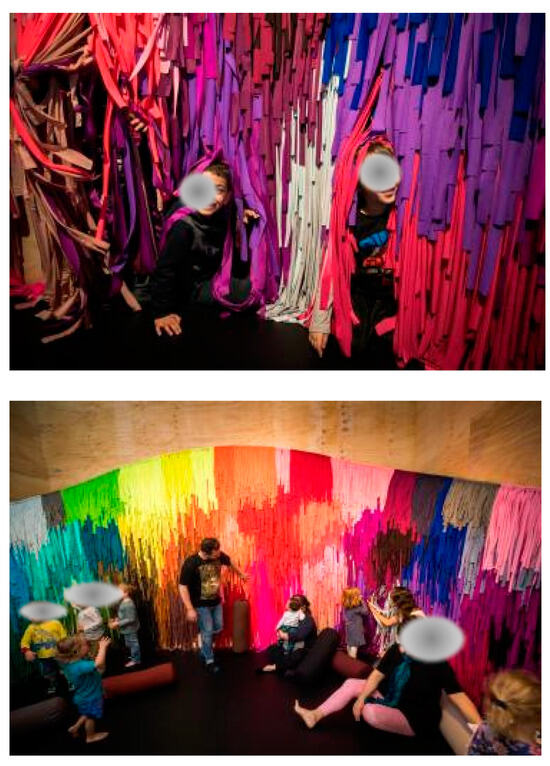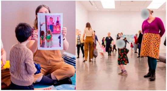 The contexts of museums and galleries are not always unproblematic places for young children [15,24,25,26]. The visible absence of very young children is apparent in most art galleries and contemporary art museums. Terreni’s research has revealed tensions relating to the (often overt, at other times more subtly implied) exclusion of young children (and their families and teachers) from public museums and galleries. Barriers to participation range from physical access issues to openly discriminatory practices and biases against young children, often founded in deficit-based perceptions of what young children are capable of and where they belong. These perceptions may be held by museums themselves but also by children’s families and teachers [27,28,29].