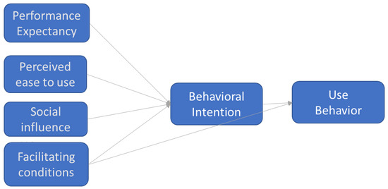 - Venkatesh, V.; Morris, M.G.; Davis, G.B.; Davis, F.D. User Acceptance of Information Technology: Toward a Unified View. MIS Q. 2003, 27, 425–478. [Google Scholar] [CrossRef]