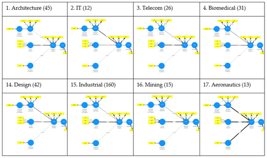 Responses were quantified using a 5-point Likert scale (where: 1 = totally disagree, 5 = totally agree), and in this manner, the indicators provided measurements for the variables in the model. The data collected were consolidated into tables containing all the responses. This data contained no personally identifiable information. Only non-identifying attributes were recorded: gender, the university and engineering school attended, and the academic level of the studies being pursued (undergraduate, graduate, or PhD). Our dataset was composed of the following groups: