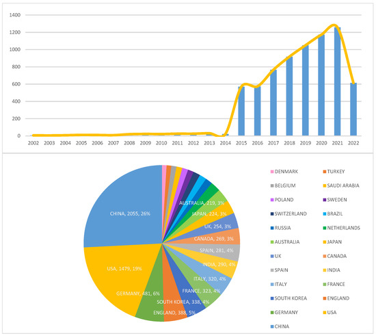 In order to obtain comprehensive results, this study was limited to the last 20 years, i.e., 2002 to 2022. A search of the Web of Science core collection with the subject “virtual simulation experiment” or “virtual lab” yielded 5772 records. The Web of Science core collection was searched with 5772 records containing rich citation information. In order to avoid omissions due to inaccurate keywords, this paper was supplemented with 94 data obtained from the virtual laboratory-related review literature [
