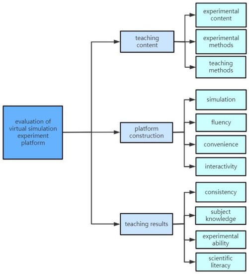 AHP for decision problems must first deconstruct the complex problem into elements formed by attributes and spatial relationships at different levels, where the upper-level elements dominate the lower-level elements. These layers are generally subdivided into objective, criterion, and solution layers. Based on the above visualization results, the evaluation elements of the virtual simulation experiment platform proposed in this thesis are shown in
