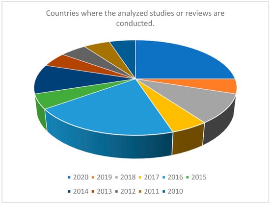 Next, regarding the countries of origin of the papers (Figure 3), a wide variety is evident. The highest percentage of documents comes from the United States (four articles), followed by the United Kingdom, Australia, and China (two), and then by Poland, Austria, Italy, Brazil, Greece, France, and Bulgaria (one).