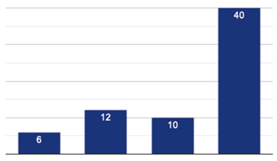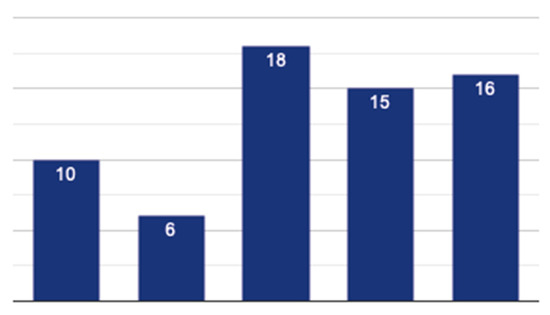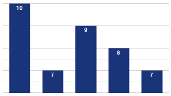 The information collected in order to be able to compare the differences between the control and experimental groups in relation to academic performance and student satisfaction was limited because it is only a pilot within the overall research and we do not currently have information from more pilots to make a more complete comparison. Regarding academic performance and student satisfaction with the evaluation and feedback received from the teacher, it should be remembered that the control and experimental groups were developed in two different subjects with two different teachers. Thus, although student performance in general was good or very good in both subjects, the distribution of grades was different (Figure 13 and Figure 14). In relation to satisfaction, it should be noted that the same trend was observed in the study by Cerro Martínez et al. [28], where the students who were monitored using learning analytics showed a higher degree of satisfaction than the students in the control group. In this study, the median of the experimental group increased by a difference of one point with respect to the control group.