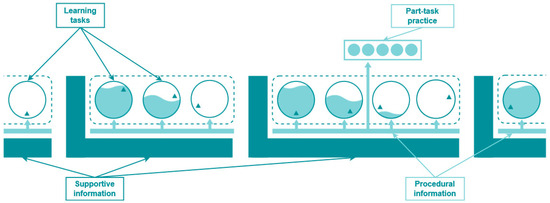 Part-task practice is used when learners are required to have a high level of automaticity of routine aspects before starting to work on learning tasks. It is important for learners to first be introduced to the routine aspect in the context of the whole task, as this provides an understanding of the part-task practice’s importance. Part-task practice is shown by the small circles in Figure 2.