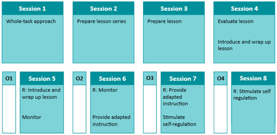 Overview of the TPD program with emphasis manipulation. Note: O stands for an observation round; hence, O 1 is observation round 1, O 2 is observation round 2, et cetera. R stands for reflection, where in sessions 5 to 8 the participants reflect on the emphasized aspect of the previous session.