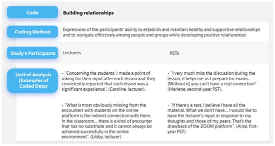 Figure 1 presents the coding procedure by demonstrating the emergence of the theme “Building relationships”.