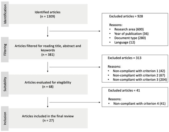 In the present study, a systematic review of the literature was carried out following the PRISMA (Preferred Reporting Items for Systematic Reviews and Meta-Analyses) Statement [], a set of guidelines for the selection of papers with clearly defined inclusion criteria [].
