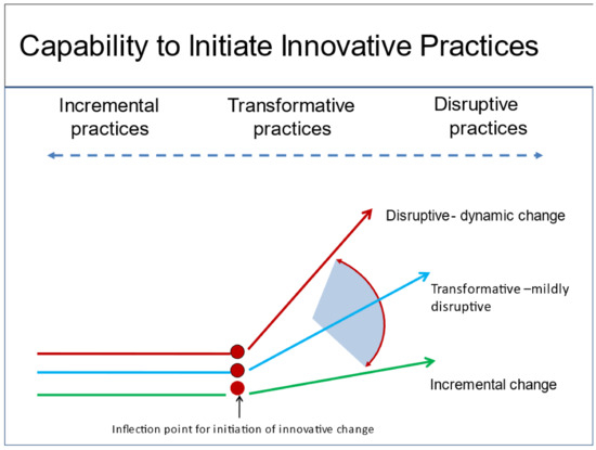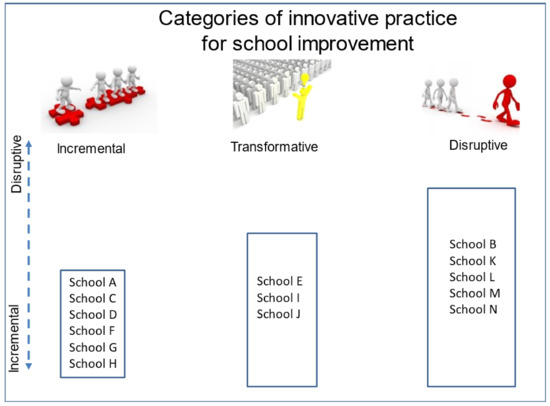 Figure 3 is adapted from Goode [10]. It attempts to stylize the three levels of innovative change and show the impact and extent of the change diagrammatically. It demonstrates the range in the capability of successful principals to innovate and use disruptive practices to affect change.