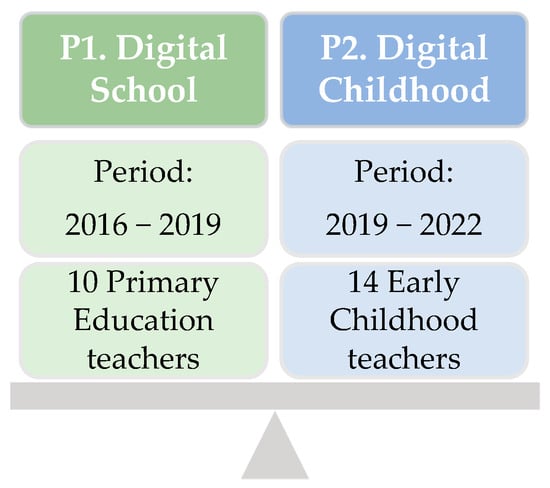 The analysis presented in this article is part of a comparative study between two projects focused on the use of Digital Didactic Materials (DDM) in the school environment. The projects are: “Escuela@ Digit@l: La Escuela de la Sociedad Digital: análisis y propuestas para la producción y uso de los contenidos digitales educativos (EDU2015-64593-R)” [Digital School: The School of the Digital Society: analysis and proposals for the production and use of educational digital content], which focuses on Primary Education, and the project “Infanci@ Digit@l: Los materiales didácticos digitales en la Educación Infantil. Análisis y propuestas para su uso en la escuela y el hogar (RTI2018-093397-B-100)” [Digital Childhood: Digital didactic materials in Early Childhood Education. Analysis and proposals for their use at school and at home], which, in turn, is situated in the field of Early Childhood Education (Figure 1). The objective of this study is to analyze and contrast the perceptions of teachers in Early Childhood and Primary Education regarding the assessment and use of DDM in two different contexts: the Autonomous Community of the Canary Islands and the Valencian Community.