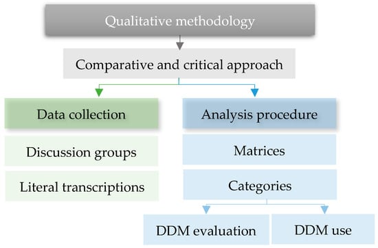 The information analysis procedure was carried out using matrices to categorize the data obtained from the literal transcriptions of each of the instruments. In this work, we specifically focus on the teachers’ opinions related to the analysis categories: 1. Evaluation of DDM and 2. Use of DDM, from both projects in the two autonomous communities (Figure 2).