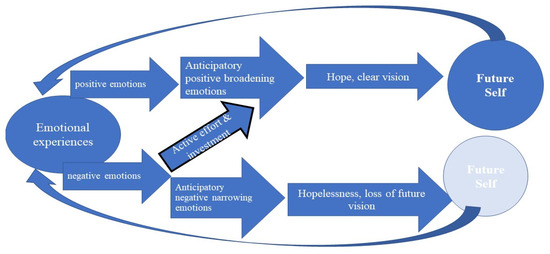 Alongside emotions, effort and the need to invest in language learning significantly affect students’ future selves. As [17] stated, activating anticipated and anticipatory emotions is an important part in the formation of future selves. In trying to achieve ideal selves, the students spoke of the investment and efforts needed to attain success and prevent failure in the future. Despite experiencing negative emotions, the anticipatory emotion of hope boosts students’ language learning efforts, empowering them to develop a clear image of their selves. For LP students, however, ambivalent anticipated emotions of hope delay the exertion of effort and investment until academic studies are over, transforming resilience into an avoidance strategy—avoiding the required investment in the present and the pain of failure. Hope can be a powerful force to help learners know where they are, what they can do, and where to reach. Conversely, the deactivating negative emotion of hopelessness reduces students’ motivation to learn as the notion of an ideal self is uncertain [45], less defined as indicated in Figure 2. Moreover, the clarity or uncertainty of the future self seems to feedback into emotional experiences within the present time.