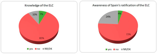 Percentage of participants familiar with the ELC and aware of the convention’s ratification by Spain. Authors’ own.