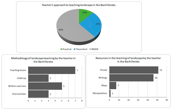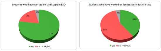 One of this study’s main targets was to establish the influence of students’ educational experience—for instance, having studied the subject “Geography” in the year before entering university—on their landscape-related knowledge. The results are clear. Against what could be expected, the greater depth of non-compulsory secondary landscape education-related subjects [15] appears to have little impact on the perception of landscape. The answers concerning the methodology followed by teachers (mainly demonstrative) in both compulsory and non-compulsory secondary education could greatly contribute to explaining these results.