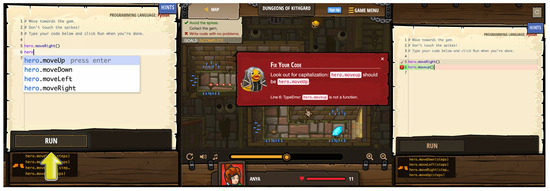 - Reflective Feedback: This stage is an integral part of the RGD framework. Games can provide both reflection in action and reflection on action. For example, reflective feedback is used to highlight the player’s code, line by line, visualise the result of the player’s code during playback (Figure 5), and visualise the student’s actions to help them reflect on and examine their process. The result is improvement in learning skills.