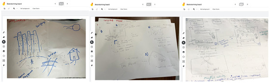 All conversations and design decisions were recorded via Google Docs and Google Jam-boards in the shared Google Drive. In addition, several participants made sketches to show their ideas, some of which are shown in Figure 7. Two sessions were held each week, and this schedule was maintained for two months.