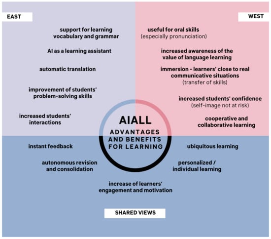 Figure 1 below summarizes the similarities and differences between the voices from the East and the West regarding the advantages and benefits of AIALL for learning.