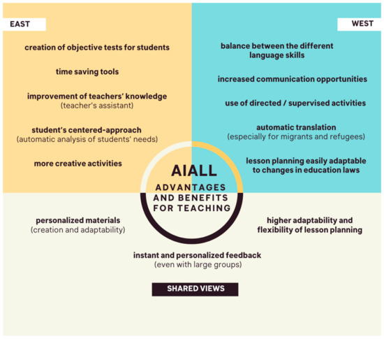 Figure 3 below summarizes the similarities and differences between the voices from the East and the West regarding the advantages and benefits of AIALL for teaching.