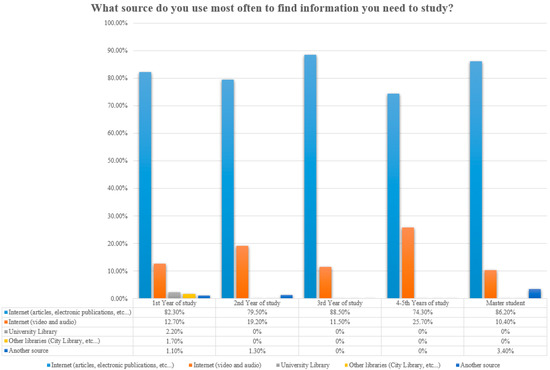 “What source do you most often use to search for information necessary to study?”. Question answer statistics.