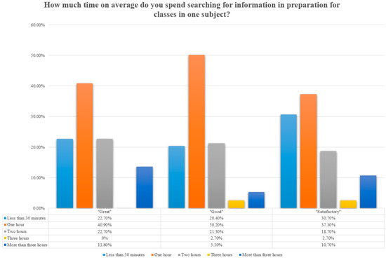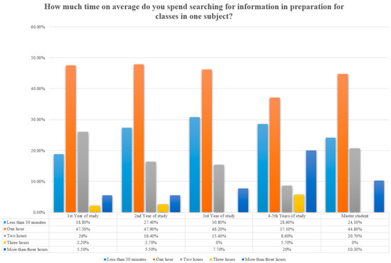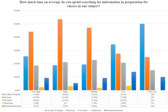 “How much time, on average, do you spend searching for information in preparation for classes in one subject?” Question answer statistics.