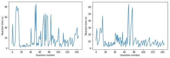 For each user, we built a time series representing the reaction time when working with web interfaces, an example of a time series is shown in Figure 2. All students answered equivalent tasks and questions in the same order.