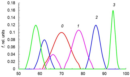 Figure 3 and Figure 4 show the versions of an educational process development: a––optimistic, and b––pessimistic. The shifting of the mean value and the narrowing of distribution density in the optimistic version indicates the increasing knowledge and similarity levels in experimental groups.