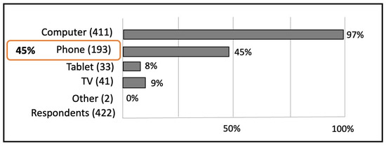 List of platforms used by students to view online teaching materials. The students could mark several options. 45% of the students indicate that they use phones for online education. The computer is by far the device that students most commonly use in their education.