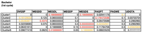 Table showing the normalized distribution of 1st cycle students according to clusters shown in Figure 7.