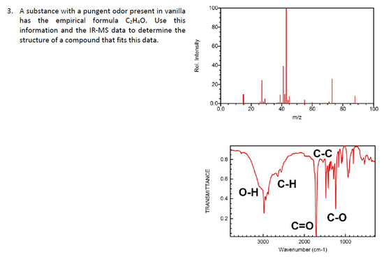 A similar question, asking students to propose a structure when given data, was asked in Week 7, as seen in Figure 6. However, this question was not given any context outside of that the compound is present in vanilla.