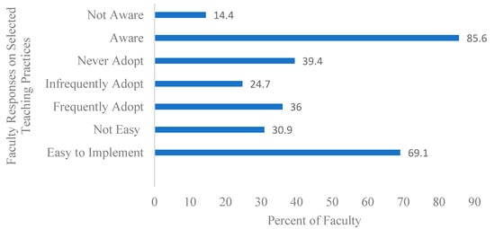 Summary of Combined Faculty Awareness, Adoption, and Ease-of-Implementation Responses of Selected Teaching Practices.
