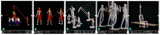 Each Taitung digital model uploaded to the open-source platforms includes four types: single-view digital modeling, 3D-view digital modeling, online 360-degree rotation operation, physical printing model, as shown in Figure 5; modeling and physical printing of personnel, places, and props required for the cultural festival of “the Bombing of Master Handan” were shown in Figure 6. This is to provide users with a variety of models for users to access, download, print, and use based on their needs, thus maximizing the diffusion benefit for advertising Taitung.
