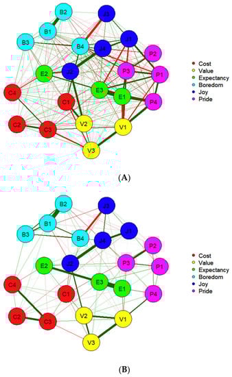 3.2.2. Edges between Control–Value Antecedents and Achievement Emotions