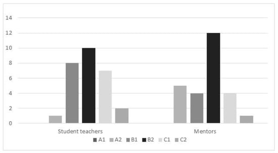 Both mentors and student teachers seemed noticeably concerned about students’ emotional wellbeing and strived to help the latter feel as comfortable as possible in class. One mentor, for example, explained that “para mí, ha sido prioritario lo que le sucedía a cada niño… hemos sido animadores para los niños desde el punto de vista profesional” [for me, my priority was what happened to each child... we have been cheerleaders for the children from the professional standpoint] (I1M: needs). However, this legitimate concern did not sidestep mentors or student teachers’ focus on the academic component of their job. Working closely together, they adapted, or searched for, innovative pedagogical methods and technological tools to provide instruction and foster student participation in class. Student teachers’ leadership and initiative were invaluable in this regard, as their familiarity with apps and technological devices introduced resources in the classroom such as Genially, Kahoot, ClassDojo, or Plickers. Moreover, they were able to expand their mentors’ knowledge of resources already present in class. One student teacher, for example, explained that, “creo que he ayudado mucho a mi tutora con la pizarra digital, ya que me gusta mucho investigar y ver qué podemos sacar de las nuevas tecnologías y cómo emplearlas en el aula” [I believe I helped my mentor a lot with the digital board, because I really like to investigate and see what we can do with the new technologies and how to use them in the classroom] (I4S: training). Mentors were very appreciative of this crucial support. Despite several of them having achieved high levels of digital competence per the European Framework for the Digital Competence of Educators [41], as shown in Figure 3, they were not reticent to recognize their limitations. One of them, for instance, openly admitted that her student teacher “posee más conocimientos que yo” ([he] possesses more knowledge than I) (I2M: enrichment and learning), while a second one synthesized what seemed to be the general opinion among his colleagues about the impact of student teachers’ technological expertise on lessons and presentations: “hoy en día estos jóvenes maestros vienen muy bien preparados en TIC y la presentación de las propuestas para presentar los contenidos de cada una de las materias se deja notar” [Nowadays, these young teachers are very well prepared in information and communication technologies (ICTs) and the presentation of the proposals to present the content in each subject is noteworthy] (I3M: digital competence).
