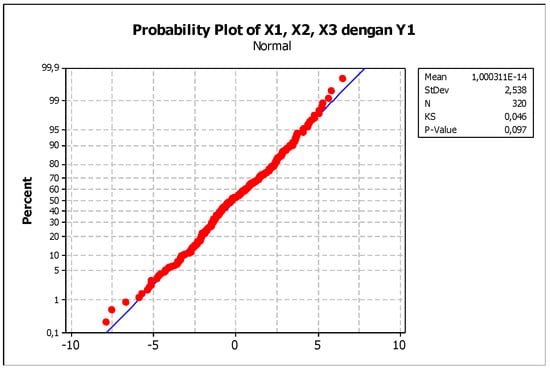 Testing the assumption of normal distribution residuals using the Kolmogorov–Smirnov method as shown in Figure 12.