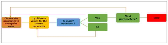 To evaluate the efficiency and decide the best-produced outcomes RF, NB, and J48 have been chosen to implement this experiment, and different parameter values have been optimized and evaluated in multiple tests. The following figure illustrates how to reach the best parameter values for each classifier. Per Figure 5, firstly the parameter is chosen whose value is to be optimized, then try the range of values against the selected parameter and check whether the model is optimized. Then move on to the next parameter and so on.