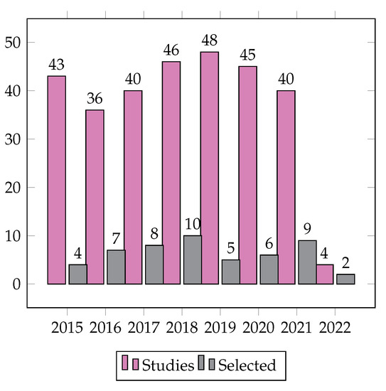 A literature review for teaching programming was presented in [14]. The scope of the SLR was directed towards the programming of teaching–learning approaches in Brazil. The percentage of studies included was 3.13%, with 2325 studies listed and 73 included. The study by de Holanda and Freire [15] has similarities to [14], because it deals with an SLR to teaching programming; however, its scope was related to introductory programming, with 2.4% inclusion of studies from a total of 2109. Unlike [14,15], the work presented here carried out research to find strategies for teaching SDC without restricting the location of the study.