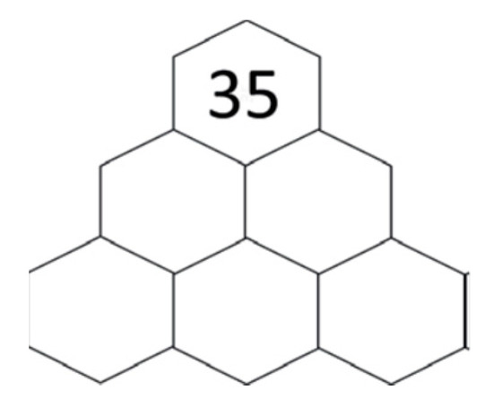 The numbers are placed one by one in the hexagons of the pyramid. Each number in the pyramid can be calculated by always performing the same operation on the two numbers displayed below it. Subjects were asked to place a number in the pyramid in Figure 5 and answer as many as possible.