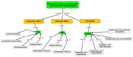 Schema informing of 21st-Century Skills and pedagogies, designed by the author with ideas extracted from [29,31,32].