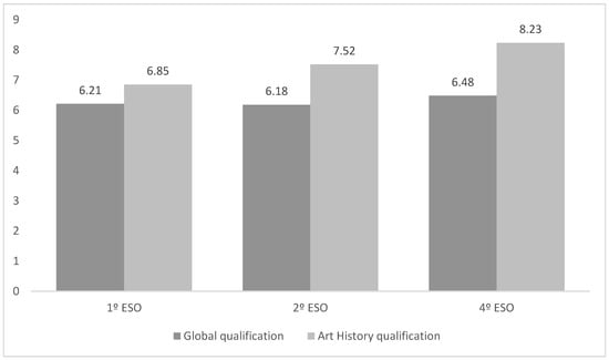 Regarding the characterization of the sample, it presented a gender distribution of 53% female and 47% male. In relation to the academic results, the overall average grade obtained in the subject of Geography and History in the courses in which the intervention was carried out was 6.13 (in the Section 3, these data are analyzed in more detail in comparison with the grades obtained in Art History content). The average age of the students in the sample was 12 years at the beginning of the intervention and 17 years at the end of it. In relation to their predisposition to work with gamification methodologies, none of these groups/classes had been subjected to systematic application interventions of this methodology, so they were not predisposed to it in any way. As additional information, in both groups there were students with special educational needs (2 in one group and 3 in the other).